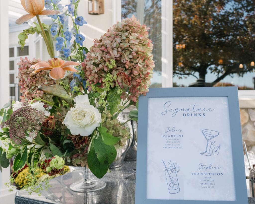 Consider a signature cocktail that reflects your story, thoughtful paper goods that tie into your overall aesthetic, and subtle “branding” moments—monograms, custom napkins, or dance floor details.