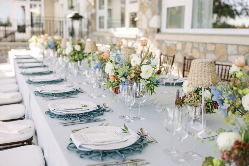 Florals should feel elevated and intentional. Focus on sculptural arrangements that echo the architecture. Let the surroundings do the storytelling. Lean into classic garden florals—roses, ranunculus, seasonal blooms. Use soft palettes that reflect the surrounding landscape. Country club weddings are a great opportunity to create layered tablescapes that feel timeless, not trend-driven.
